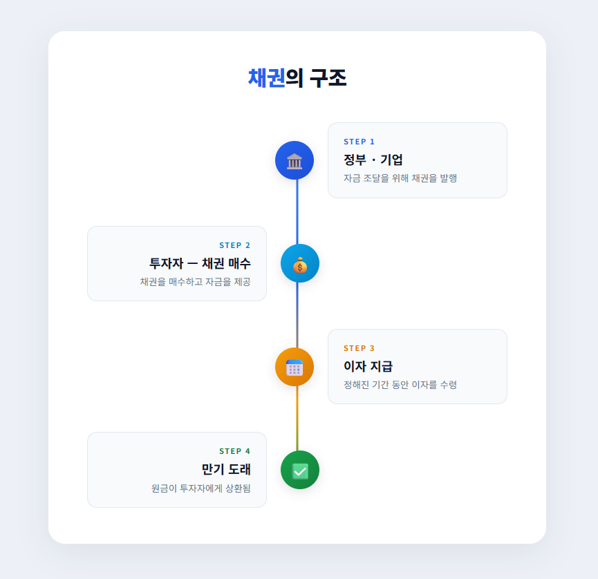 기본적으로는 돈을 빌려주고 이자를 받는 구조이지만, 실제 투자에서는 금리 변화에 따라 가격이 움직인다는 점까지 함께 이해해야 합니다.